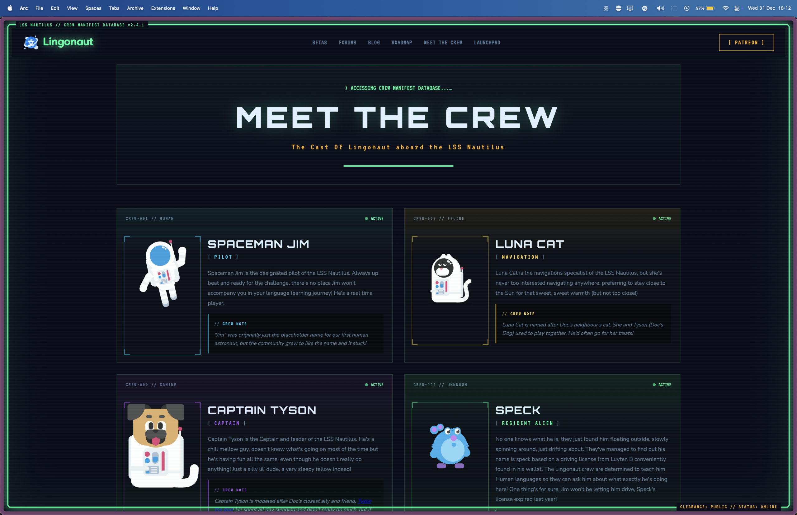 We’ve completely redesigned the Meet the Crew page into an Interactive ‘Terminal’ like design as if you’re accessing the LSS Nautilus systems yourself! It’s something we’re really proud of and even if you’ve met the crew before, I think you should visit the new page, it looks really nice.